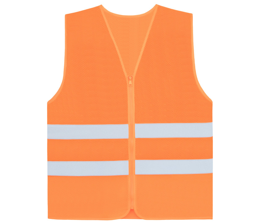 Sicherheitsweste aus Mesh mit Komfortschnitt. Zwei 5 cm breite reflektierende Streifen um den Körper sorgen für gute Sichtbarkeit. Hi vis yellow genormt EN 17353:2020 Typ AB3. Hi vis orange genormt EN ISO 20471:2013/A1:2016.