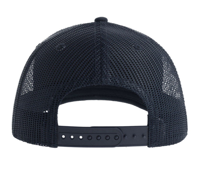 6 Panel. Vorgeformtes Visier. Snapback-Verschluss. Mesh-Rücken und -Seiten. Genähte Ösen. Ziernähte am Schirm. Kopfumfang: 58cm. Schirm mit Kunststoffkernstruktur gefertigt.