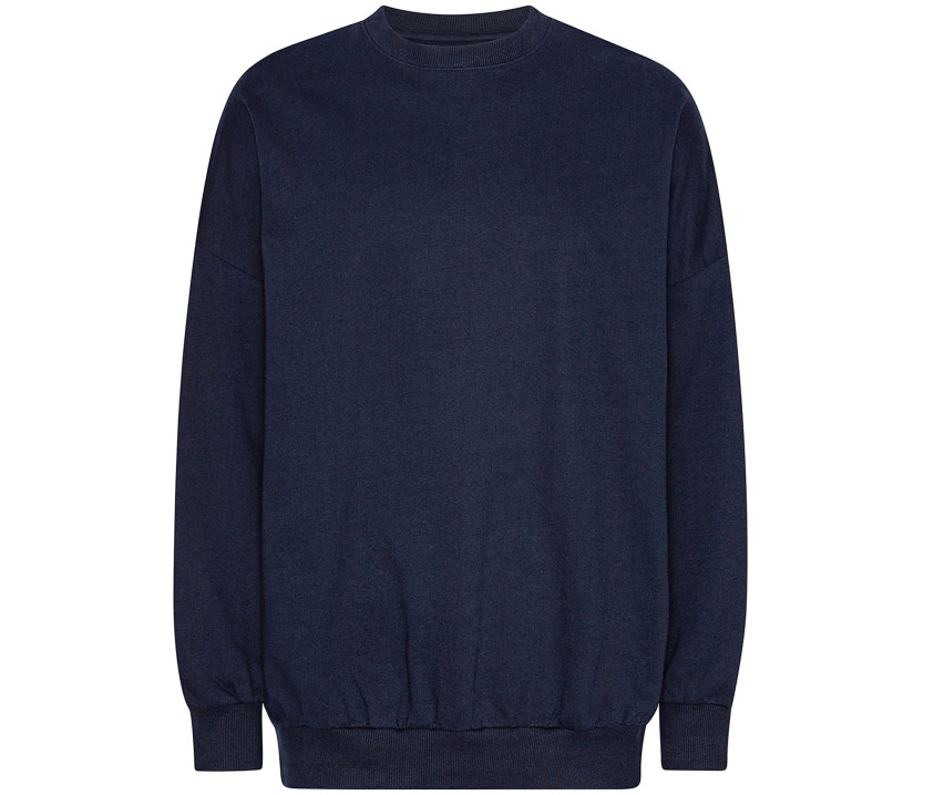 - Überschnittene Schultern. Gestrickter Saum, Kragen und Ärmel. Gebürstetes Vlies.
