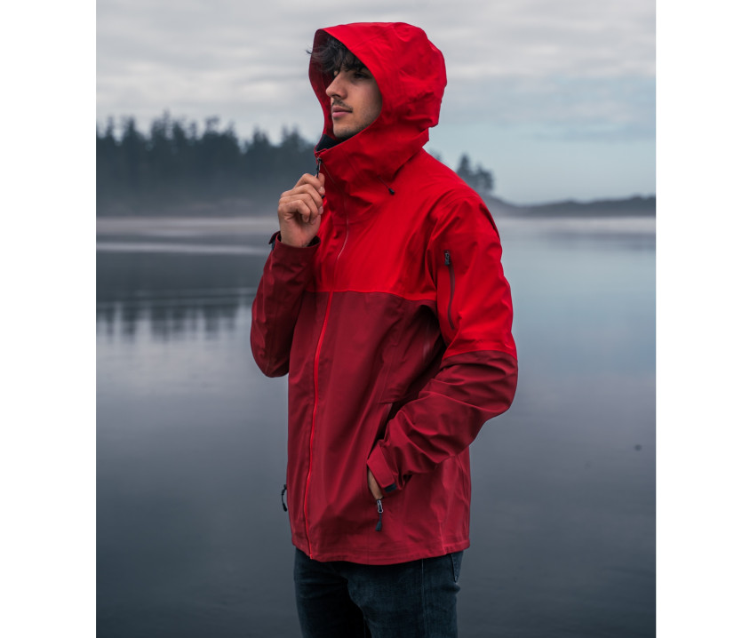 Pure Earth by STORMTECH™. STORMTECH 3-layer H2XTREME® 20000/10000 waterproof / breathable outer shell. PFC-free Durable Water Repellent finish. High-performance windproof outer shell with mechanical stretch. Fully sealed seams. YKK® AquaGuard® center front zipper. Articulated elbows. Waterproof zippered hand pockets. Helmet compatible. Full-coverage hood. Concealed hood adjustments with easy-access drawcord. Ergonomic. Full-coverage center front neck. Two-way waterproof pit zips. Welded hood brim. Welded brushed tricot back neck reinforcement. Adjustable cuffs. Internal mesh stash pockets. Adjustable dropped-back hem. Waterproof zippered sleeve pocket.