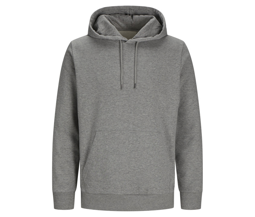 Kapuze mit Kordelzug und Metallspitzen. Kängurutasche. Eingesetzte Ärmel.