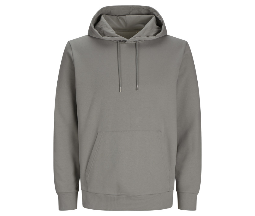 Kapuze mit Kordelzug und Metallspitzen. Kängurutasche. Eingesetzte Ärmel.