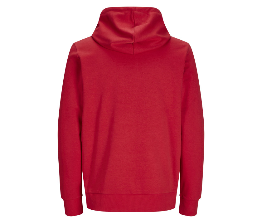 Kapuze mit Kordelzug und Metallspitzen. Kängurutasche. Eingesetzte Ärmel.