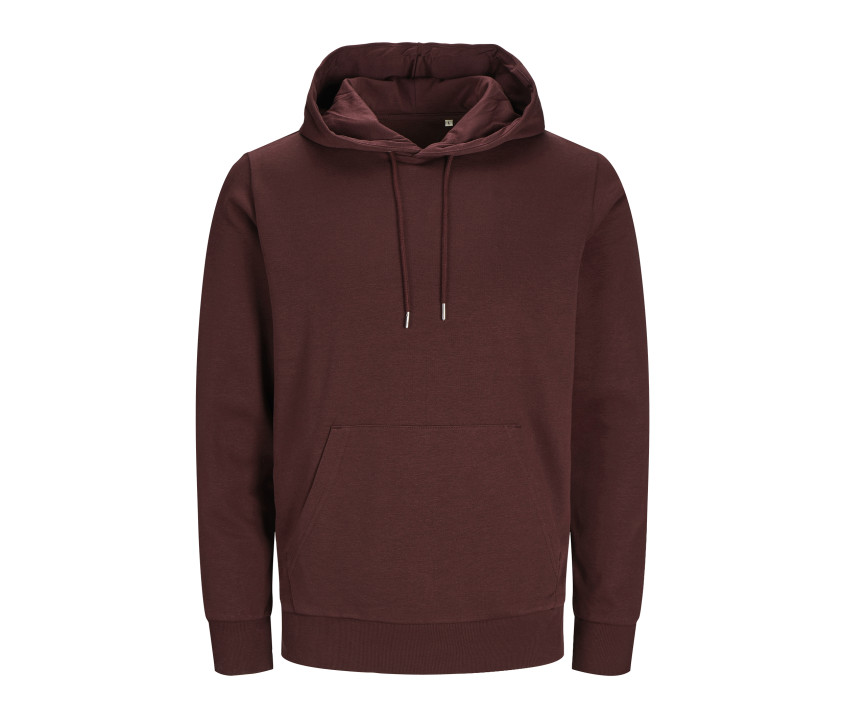 Kapuze mit Kordelzug und Metallspitzen. Kängurutasche. Eingesetzte Ärmel.
