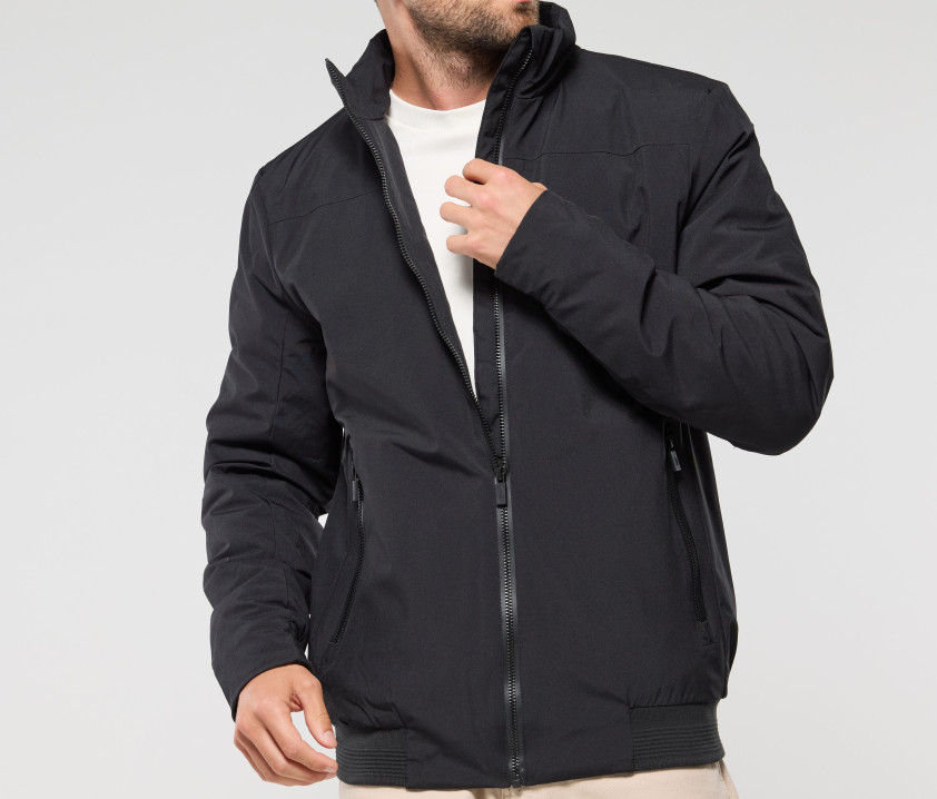 - Leichte wasserdichte Jacke. Mit wasserdichten Reißverschlüssen. Elastische Rippstrickbündchen an Ärmeln und Saum. Innenfutter aus recyceltem Polyester. Wasserdichtigkeit: 4000-5000mm.