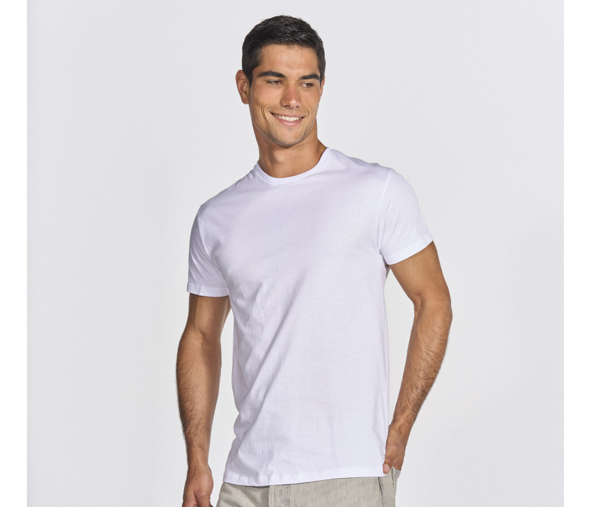 Rundhals-T-Shirt 150 - Röhrenförmiger Schnitt. Verstärkung von Schulter zu Schulter. Weich und bequem zu tragen. Natürliche Grundierung für eine weichere und glattere Oberfläche.