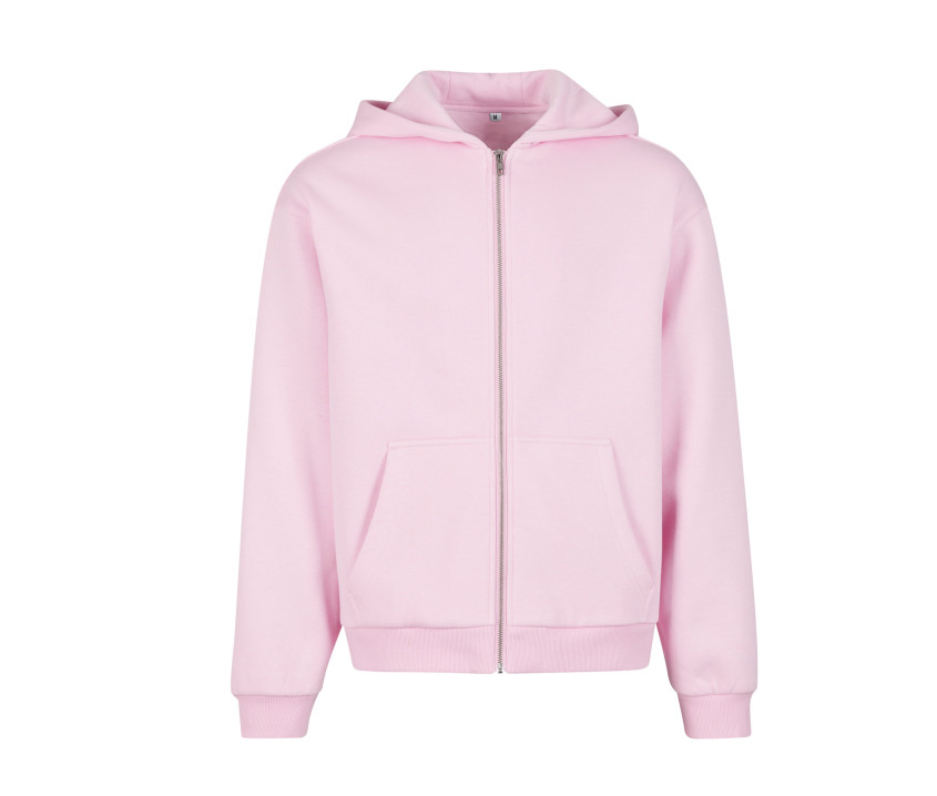 Überdimensionale Passform. Überschnittene Schultern. Kängurutasche. Geripptes Bündchen an Saum und Ärmelsaum. Metall-Reißverschluss. Innen gebürstet.