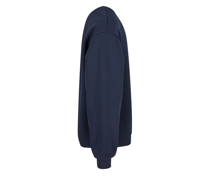 Rundhals-Sweatshirt, weite Passform. Breiter Rippbund am Halsausschnitt. Überschnittene Schultern. Innen weich angeraut.