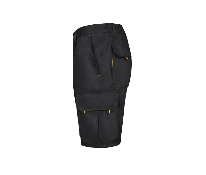 Hosenschlitz mit Knopf und Reißverschluss. Faltenbalge Taschen, Schieber und Nähte kontrastiert. Gewebe hinten verstärkt. Elastischer Bund. Verstärkte Doppelnaht. 6 Taschen: 2 Seitentaschen, 2 Taschen an den Oberschenkeln mit Klappe, Klettverschluss und Ziehern.