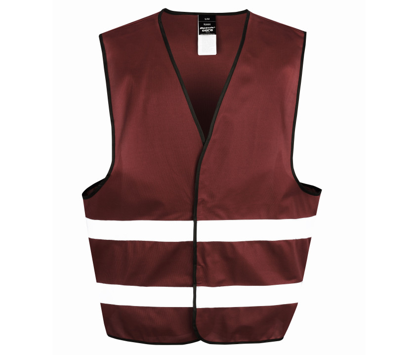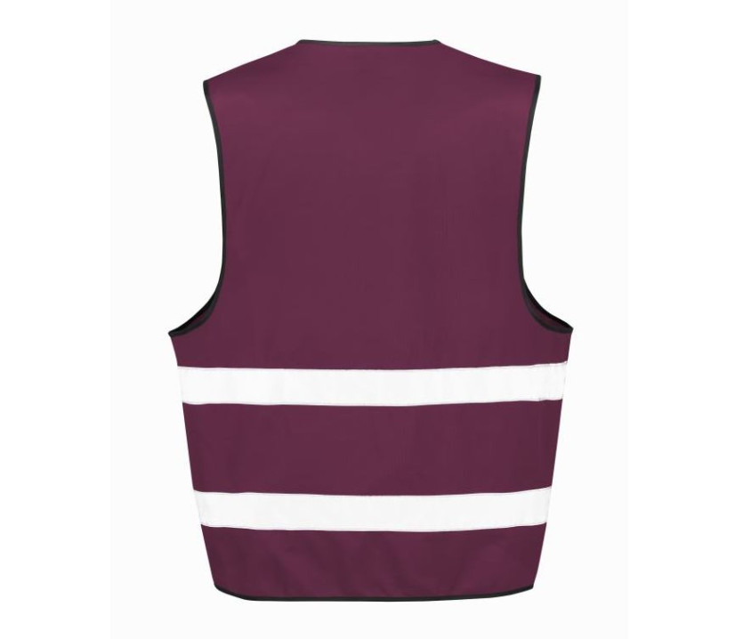 Warnschutzweste - Graue Ränder aus Polyester. Genähte Sicherheitsstreifen.