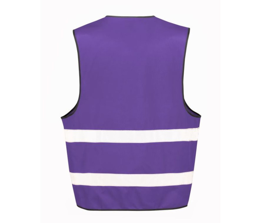 Warnschutzweste - Graue Ränder aus Polyester. Genähte Sicherheitsstreifen.