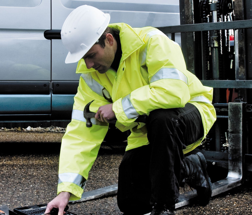 5 cm breite Streifen 3M™ retroreflektierend. Schultern nahtlos und wasserdicht. Winddicht. Reißverschluss mit Klappe mit Druckknöpfen. Kapuze im Kragen. 2 aufgesetzte Taschen und 2 Innentaschen. Belüftungsösen unter den Armen. Entspricht der Richtlinie 89/686/EEC. Zugriff für die Personalisierung. Entspricht der Spezifikation EN ISO20471.