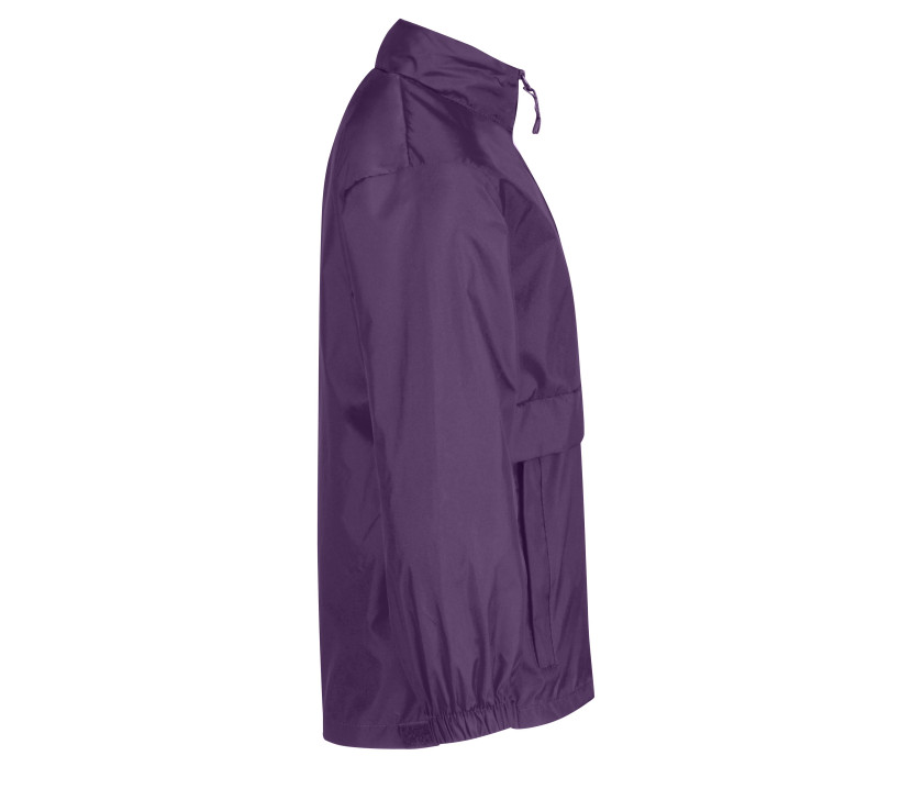 Reißverschluss. Kapuze im Kragen. Wasserdichte und winddichte Jacke, in einer mittigen Tasche faltbar.