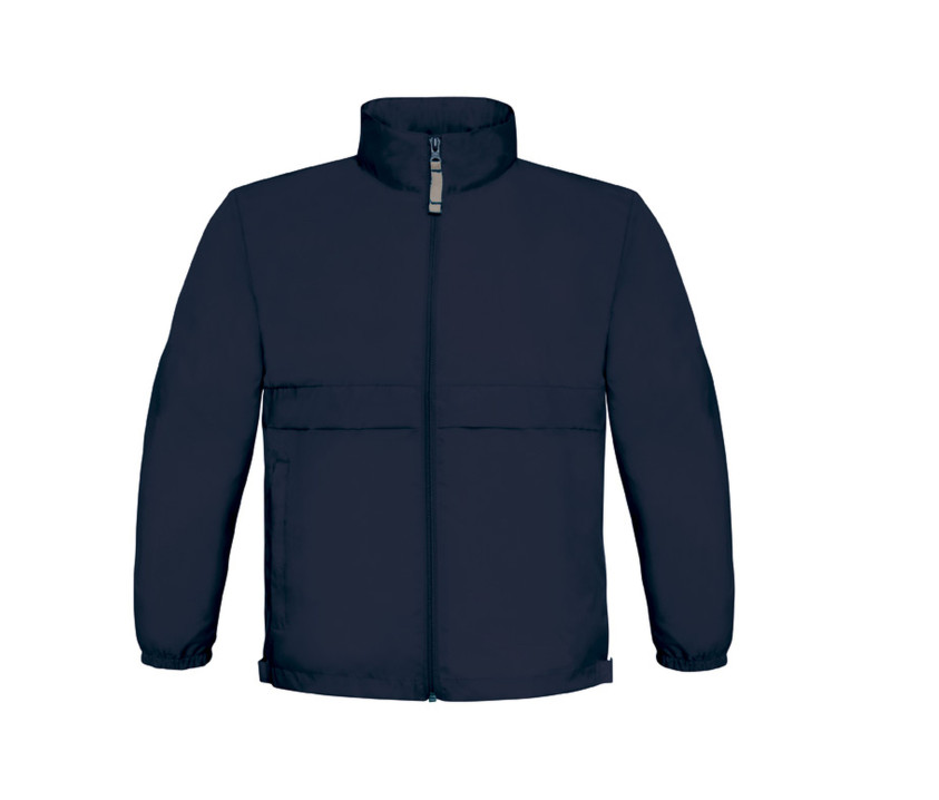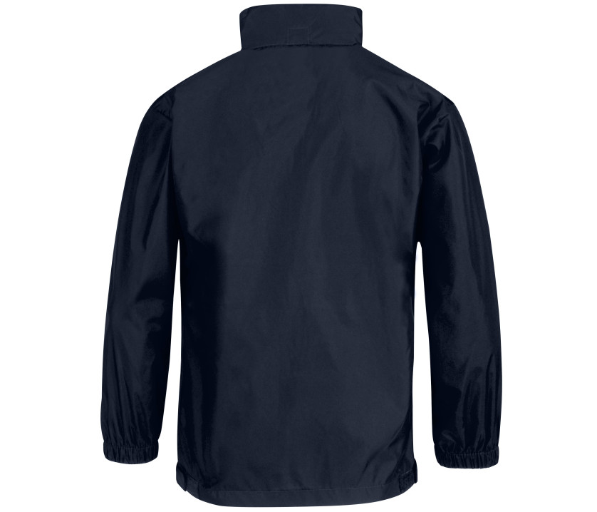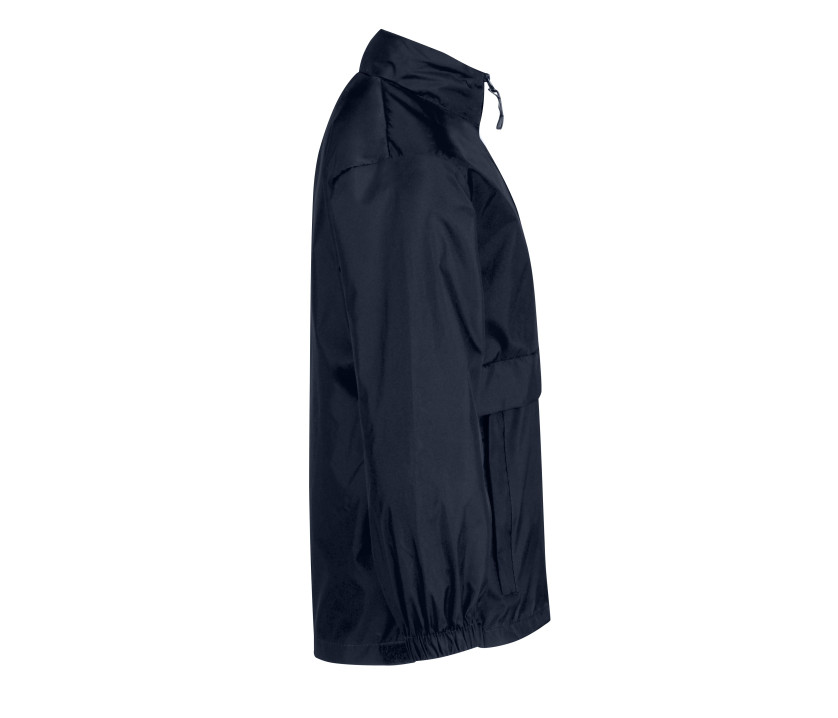 Reißverschluss. Kapuze im Kragen. Wasserdichte und winddichte Jacke, in einer mittigen Tasche faltbar.