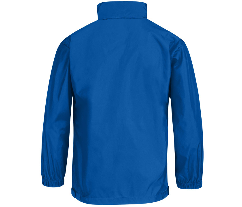 Reißverschluss. Kapuze im Kragen. Wasserdichte und winddichte Jacke, in einer mittigen Tasche faltbar.