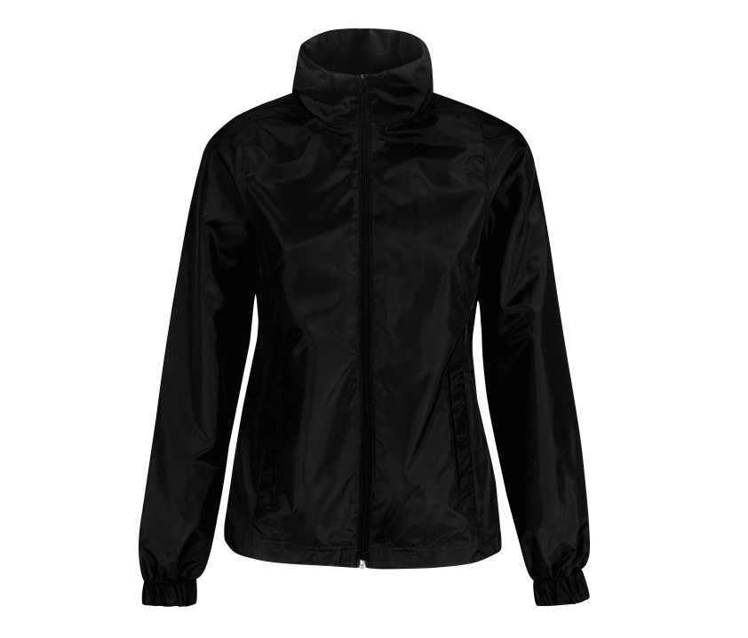 Windjacke mit Tricot-Fütterung. Vollständige Öffnung per Reißverschluss mit Schieber. Ergonomische Kapuze im Kragen mit Verschlüssen. Mit dem gleichen Gewebe gefütterter Kragen. Schulternähte für besseren Schutz nach vorne versetzt. 2 Taschen mit Klappe vorne. Elastische Ärmelbündchen. Ergonomische seitliche Paneele. Verstellbarer Abschluss mit Zugbändern. Stickerei und Dekoration dank niedriger Öffnung einfach. Weibliche Passform.