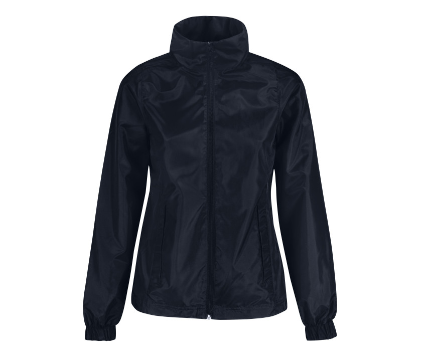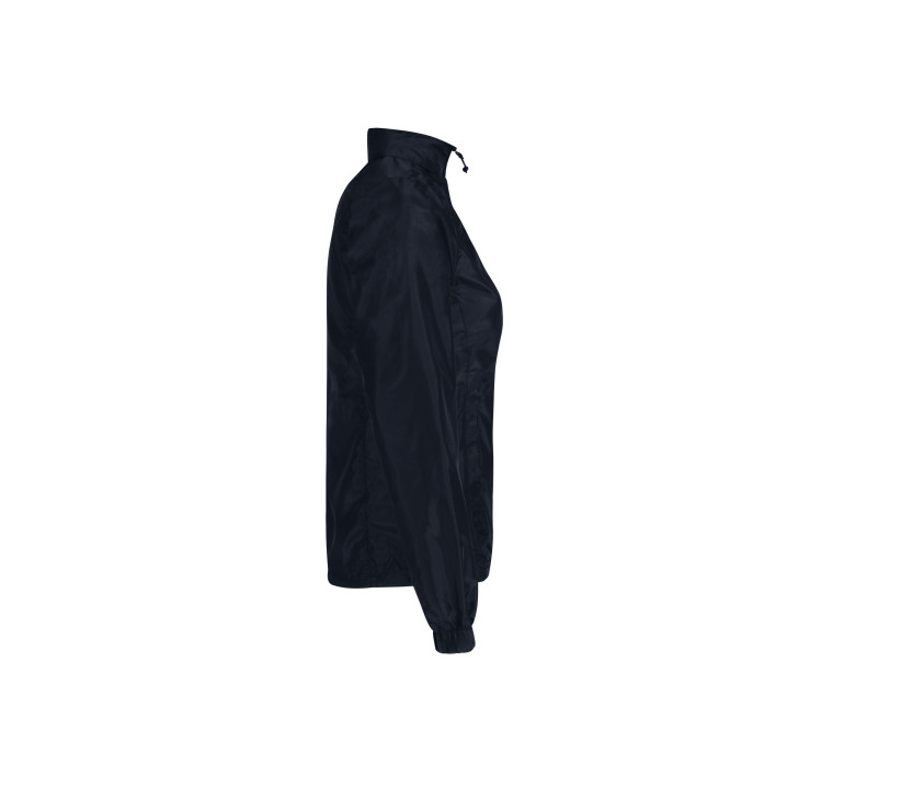 Windjacke mit Tricot-Fütterung. Vollständige Öffnung per Reißverschluss mit Schieber. Ergonomische Kapuze im Kragen mit Verschlüssen. Mit dem gleichen Gewebe gefütterter Kragen. Schulternähte für besseren Schutz nach vorne versetzt. 2 Taschen mit Klappe vorne. Elastische Ärmelbündchen. Ergonomische seitliche Paneele. Verstellbarer Abschluss mit Zugbändern. Stickerei und Dekoration dank niedriger Öffnung einfach. Weibliche Passform.