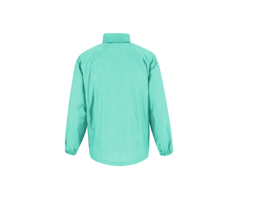 Wasserdicht und winddicht. Reißverschluss mit Accessoire Schieber in Kontrastfarbe. Kapuze im Kragen. Faltbare Jacke basierend auf dem System K-way® in der rechten Tasche integriert, mit Reißverschluss mit Doppelschieber.