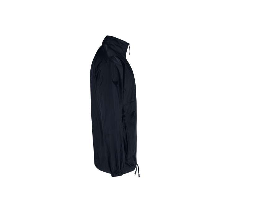 Wasserdicht und winddicht. Reißverschluss mit Accessoire Schieber in Kontrastfarbe. Kapuze im Kragen. Faltbare Jacke basierend auf dem System K-way® in der rechten Tasche integriert, mit Reißverschluss mit Doppelschieber.