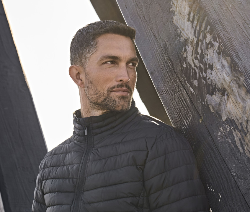 Modische Passform. Verstellbare Größe. Elastische Ärmelbündchen. 2 Seitentaschen. Innentasche.