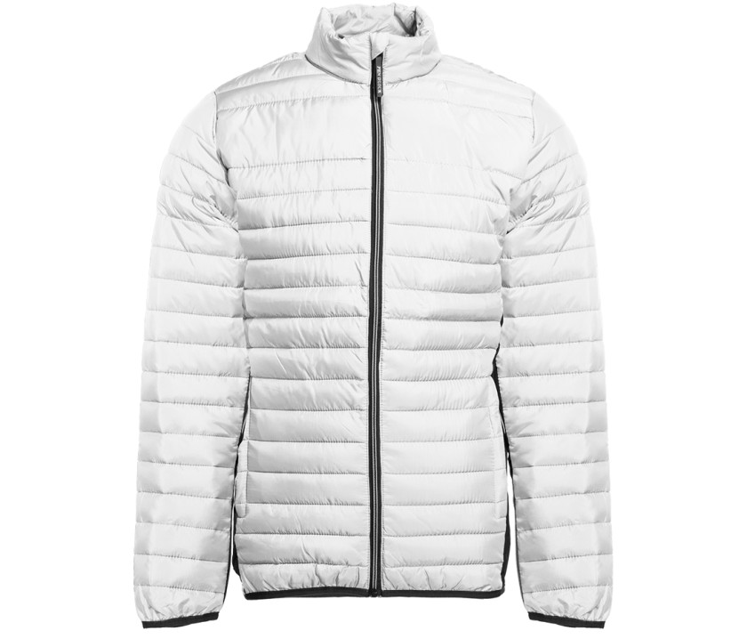 Leichte, modische Daunenjacke aus Bi-Material, anliegende Passform. 2 Seitentaschen mit Reißverschluss. 2 Innentaschen. Kinnschutz. Kontrastierte Reißverschlüsse. Druckfläche vorne 9 cm und hinten 12 cm.