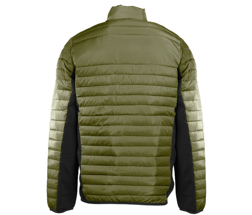 Leichte, modische Daunenjacke aus Bi-Material, anliegende Passform. 2 Seitentaschen mit Reißverschluss. 2 Innentaschen. Kinnschutz. Kontrastierte Reißverschlüsse. Druckfläche vorne 9 cm und hinten 12 cm.