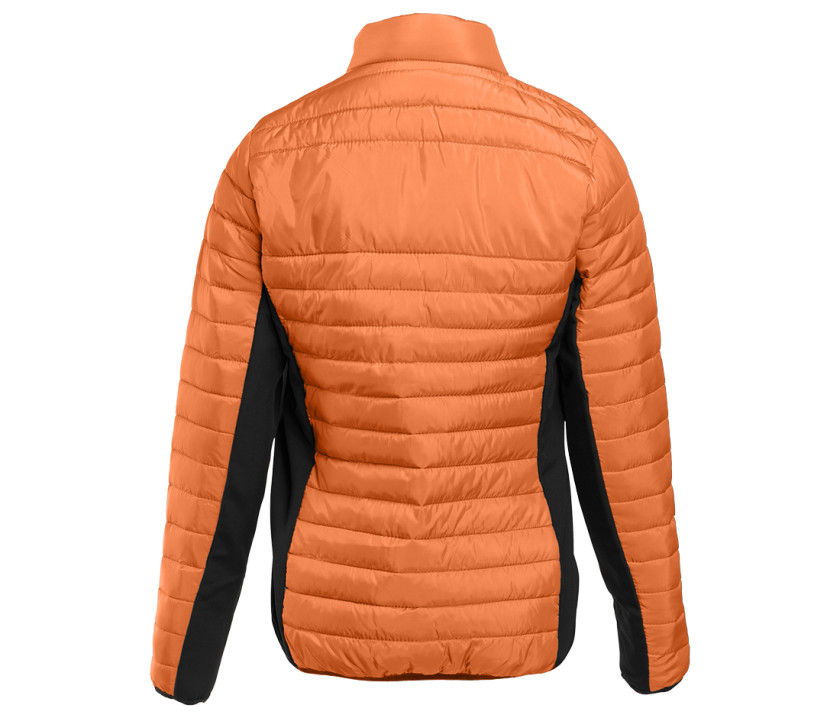 Leichte, modische Daunenjacke aus Bi-Material, anliegende Passform. 2 Seitentaschen mit Reißverschluss. 2 Innentaschen. Kinnschutz. Kontrastierte Reißverschlüsse. Druckfläche vorne 9 cm und hinten 12 cm.