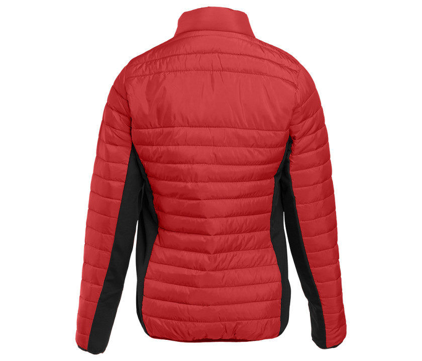 Leichte, modische Daunenjacke aus Bi-Material, anliegende Passform. 2 Seitentaschen mit Reißverschluss. 2 Innentaschen. Kinnschutz. Kontrastierte Reißverschlüsse. Druckfläche vorne 9 cm und hinten 12 cm.