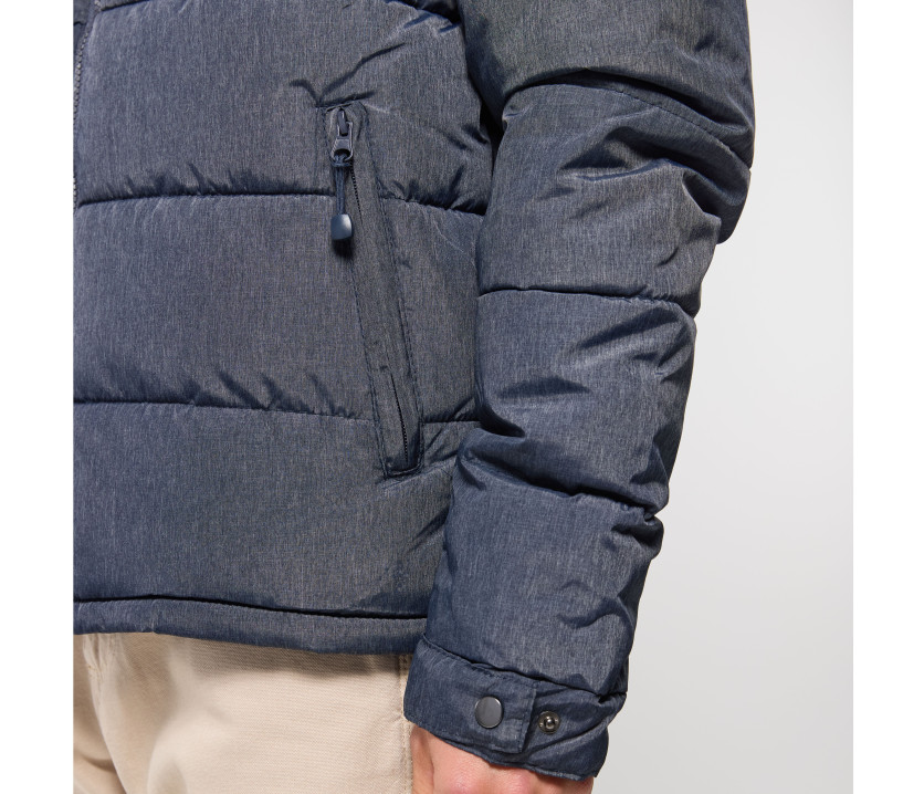 Abnehmbare Kapuze. 2 Reißverschlusstaschen an den Seiten und 2 Innentaschen (1 mit Reißverschluss und 1 mit Klettverschluss). Eingang für Veredelung am Rücken.