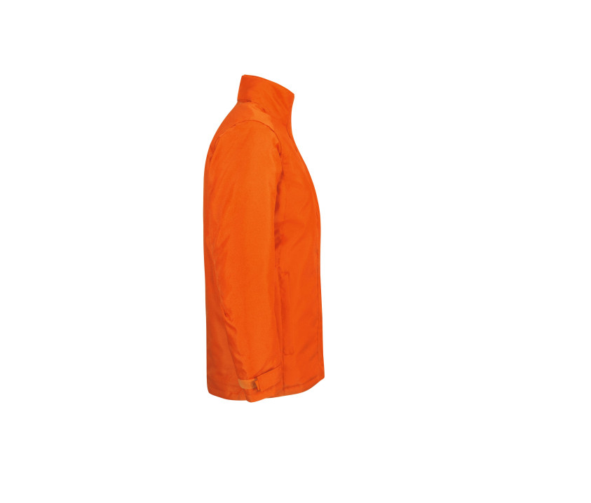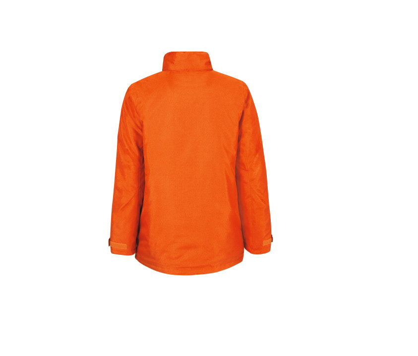 Wasserdicht bis 1000 mm und winddicht. Reißverschluss vorne unter Klappe, Klettverschluss mit Kinnschutz. 2 Taschen vorne mit Reißverschluss unter Klappe. 3-teilige faltbare Kapuze. 1 Innentasche mit Reißverschluss. Bündchen mit Klettverschlussband. Fütterung und Accessoires farblich passend. Anliegende weibliche Passform. Zugriff für die Personalisierung.