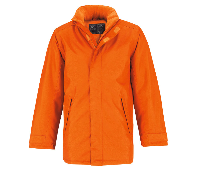 Hoher Kragen und Hälfte des Rückens mit Anti-Pilling-Microfleece gefüttert. Gepolsterte Fütterung aus Polyester und Accessoires farblich passend. Kapuze mit 3 Paneelen, faltbar mit ösen und flachen Zugbändern mit Kunststoffenden. Kinnschutz. Vollständige Öffnung per Reißverschluss vorne, unter der Klappe. Ergonomische Ärmel und artikulierte Ellenbogen. 2 Taschen vorne mit Reißverschluss unter Klappe. 1 Innentasche für Geldbeutel mit Reißverschluss. Verstellbare Bündchen mit Verschlussband. Zugriff für die Personalisierung. Wasserdichtigkeit: 1000mm.