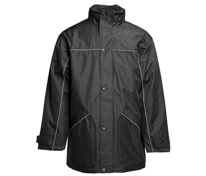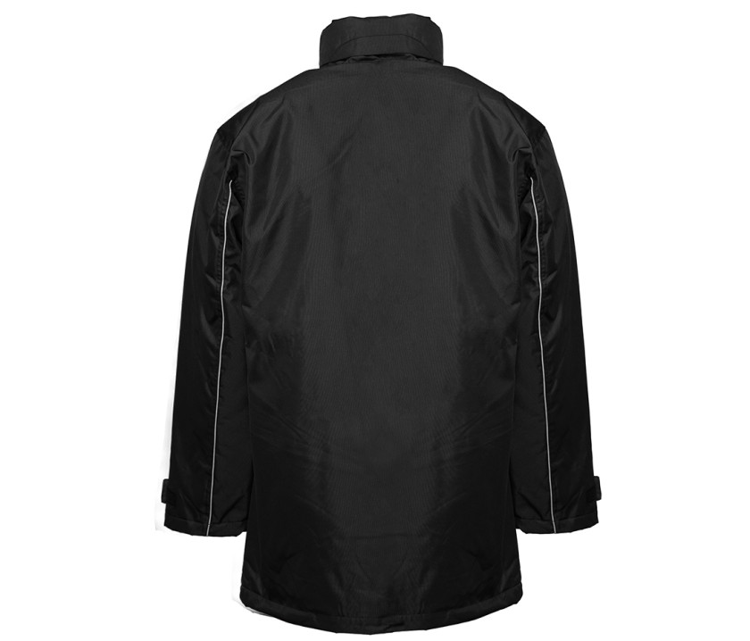 Winddicht mit wasserdichter Beschichtung. 2 Außentaschen mit Reißverschluss. 2 Innentaschen. Kapuze aus Oxford im Kragen. Kragen mit Fleece-Futter. Klettverschlussband an den Ärmeln. Zugriff für die Personalisierung. Reflexpaspel an den Ärmeln, vorne und Taschen.
