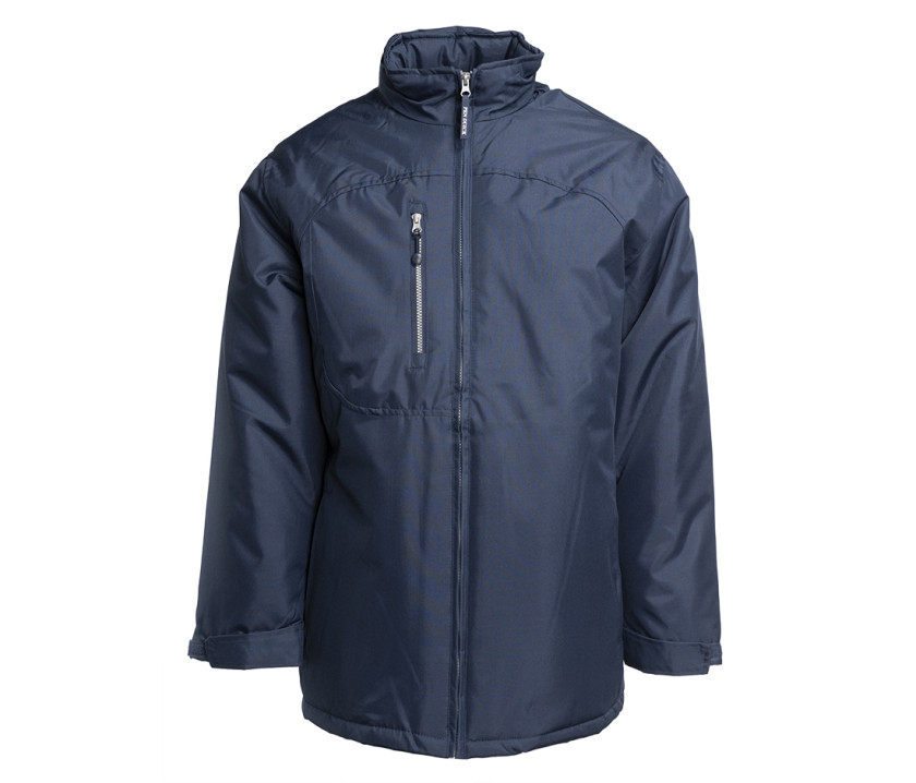 Winddicht und wasserdicht 1000mm. Kapuze im Kragen, verstellbar mit Stopper. Verstellbare Ärmelabschlüsse. Anliegende Passform. Innentasche mit Reißverschluss. 2 Seitentaschen mit Reißverschluss. Brusttasche mit Reißverschluss. Lasche Pen Duick abnehmbar am Hauptreißverschluss. Zugriff für die Personalisierung.
