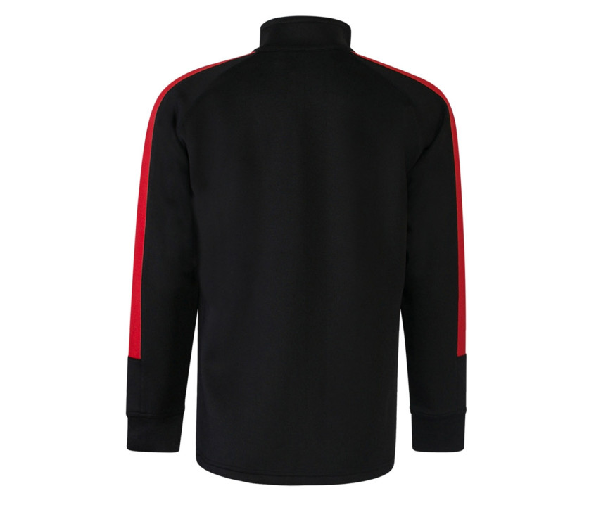 Jacke mit durchgehendem Reißverschluss kontrastiert. Kontraststreifen Schultern und Ärmel. Seitentaschen mit Reißverschluss. Ärmel mit 1x1-Rippenbündchen. Stehkragen.