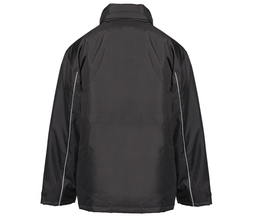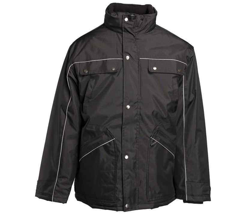 - 3-in-1-Arbeitsjacke. Winddicht und wasserdicht. Keder reflektierend vorne und hinten an den Ärmeln. Berg Kapuze im Kragen.