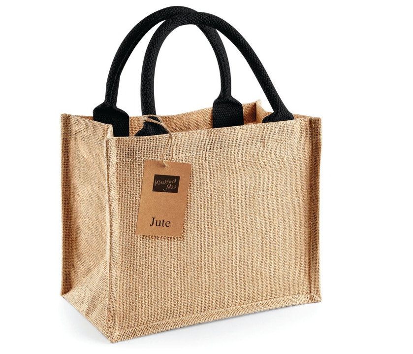Jutetasche. Baumwollgriffe. Länge der Trägerriemen 35 cm. Bedruckbare Fläche 18x14 cm.