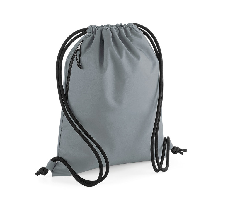 Versteckte Tasche. Verschluss per Kordel. Zieher mit Reflexdetails an den Seiten. Bedruckbare Fläche: 36x26 cm.