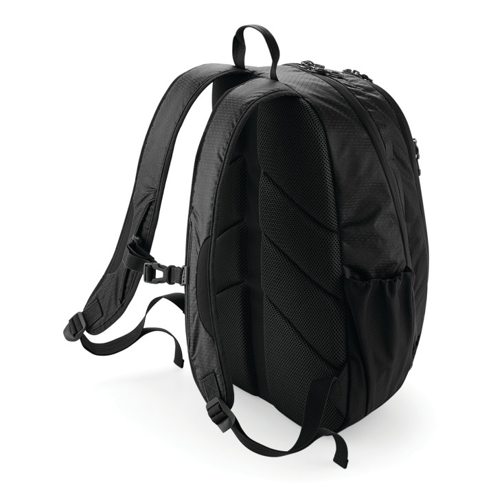 Ablösbares Etikett. Kompatibel für Laptops bis 15,6 Zoll. Doppelfach, eines davon gepolstert für den Laptop. Reflexstreifen. Zwei Flaschenhalter aus Maschengewebe. Vordertasche mit Reißverschluss. Innentasche aus Maschengewebe. Gepolsterter Rücken. Gepolsterte, verstellbare Schulterriemen aus Maschengewebe. Brustriemen verstellbar. Tragegriff. Bedruckbare Fläche: 12x20 cm.