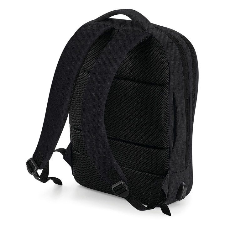 Kompatibel für Laptop bis 15,6 Zoll. Fächer für Tablets//iPad® und PC gepolstert. Reißverschlusstasche hinten, diskreter Reißverschluss. Aufbewahrungstasche vorne. Batterietasche. Integrierter USB-Port. Innentasche mit Reißverschluss. Kann in der Hand oder auf dem Rücken getragen werden. Fronttasche mit Reißverschluss. Seitentasche mit Reißverschluss für Flasche. Gepolsterter Rücken. Gepolsterte Träger. Bedruckbare Fläche: 22x16 cm.