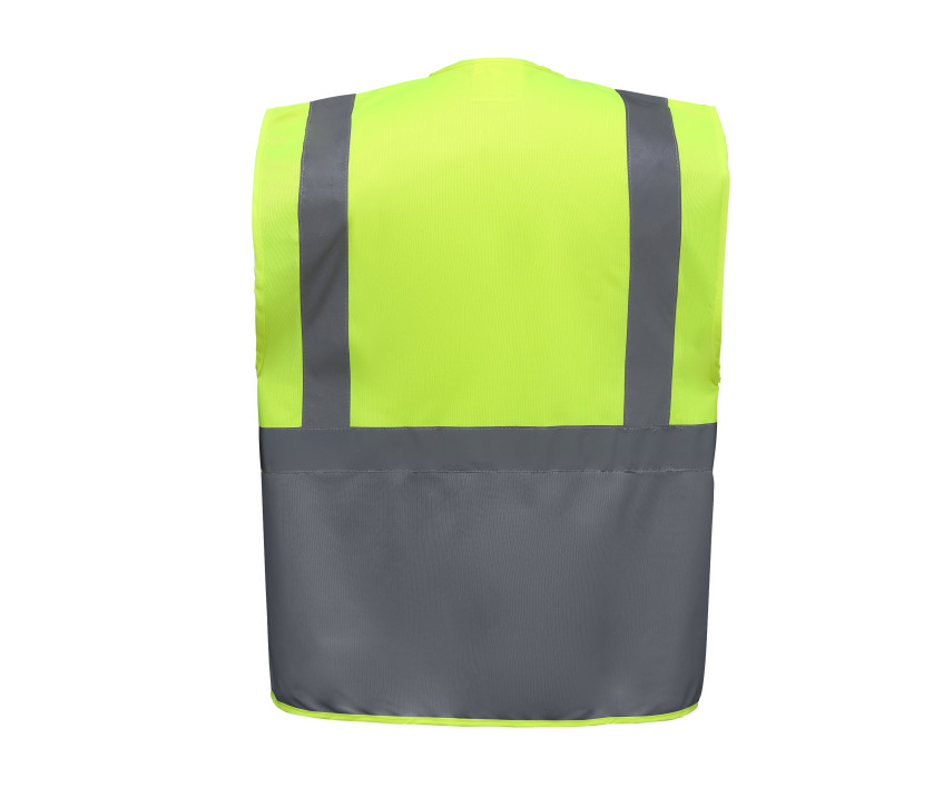 Hochsicherheits-Multifunktionsweste - 2 vertikale und 2 horizontale reflektierende Streifen, 5 cm breit, angenäht. Verschluss mit Reißverschluss. Platz für Identifikation auf der Brust auf der Herzseite. Die Farben Hi-vis Yellow, Hi-vis Orange, Hi-vis Orange/Hi-vis Yellow entsprechen der Spezifikation EN ISO20471:2013 Class 2. Die Farben Paramedic Green/Hi-vis Yellow, Red/Hi-vis Yellow, Hi-vis Yellow/Royal Blue, Hi-vis Yellow/Black, Hi-vis Orange/Royal blue, Hi-vis Orange/Black, Hi-vis Yellow/Navy, Hi-vis Orange/Navy, Hi-vis Yellow/Grey, Hi-vis Orange/Grey, Hi-vis Yellow/Purple entsprechen der Spezifikation EN ISO20471:2013 Class 1. Die Farben Paramedic Green, Black, Pink, Red, Royal, Sapphire, Sky, White, Purple entsprechen nicht der Spezifikation EN ISO20471:2013.