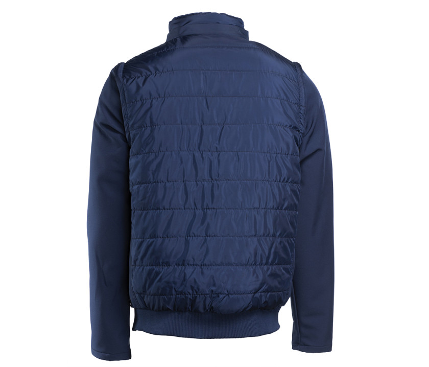Gepolsterte Jacke mit abnehmbaren Ärmeln. Kombination aus 2 Materialien: Körper gepolstert, Ärmel und Seiten aus Softshell. Möglichkeit Kapuzen hinzuzufügen Ref. PK995 - Ref. PK996 - Ref. PK997 Seite 196 (Reißverschluss im Kragen versteckt). Dicker Rippenstrick am Bund. Unsichtbarer Reißverschluss im Rücken zur Markierung.