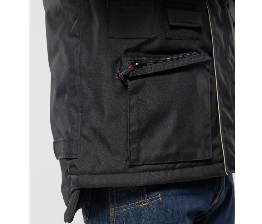 Außen: 100 % Polyester 300D mit Weather-Block®-Beschichtung. Innen: 100 % Polyester-Fleece, wattiert.