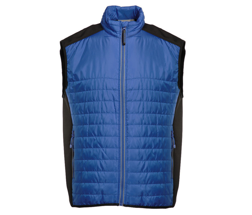 Bodywarmer aus Bi-Material wasserabweisend und winddicht. Modischer Schnitt und Look. Zugriff Markierung Herz. 2 Seitentaschen mit Reißverschluss. Saum reflektierend an den Reißverschlüssen. Rücken vollständig schwarz.