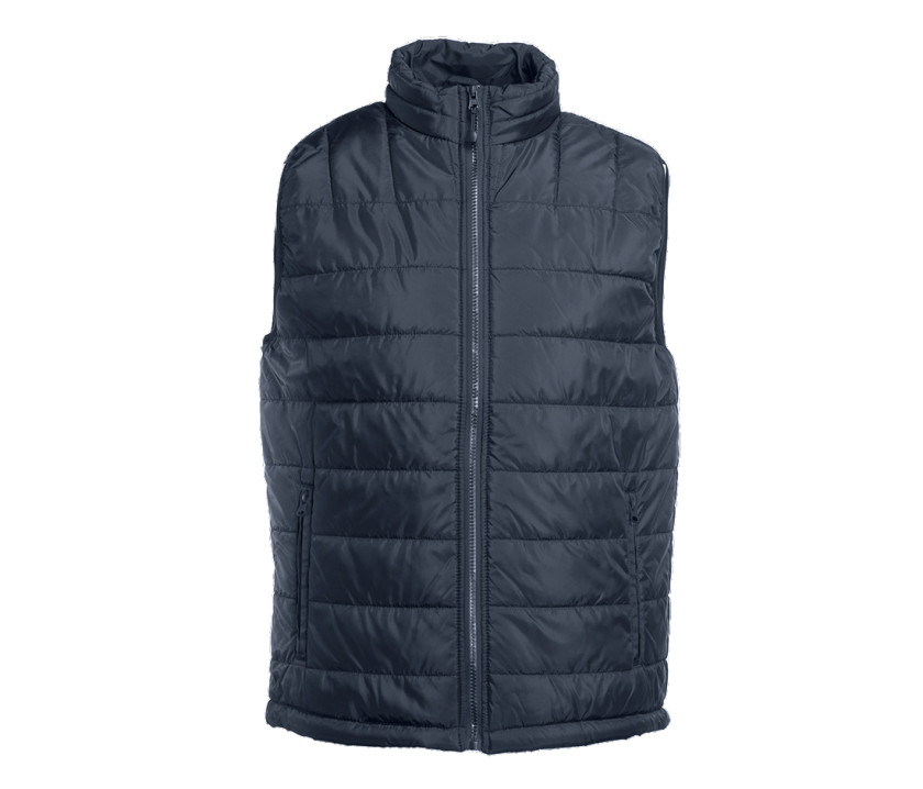 Modischer Bodywarmer für Herren - Großer Reißverschluss mit einer linken Innentasche für Markierungen. Möglichkeit, den Bodywarmer vollständig in der rechten Innentasche mit Velcro®-Klettverschluss zu verstauen. 2 Seitentaschen mit Reißverschluss und Patte.