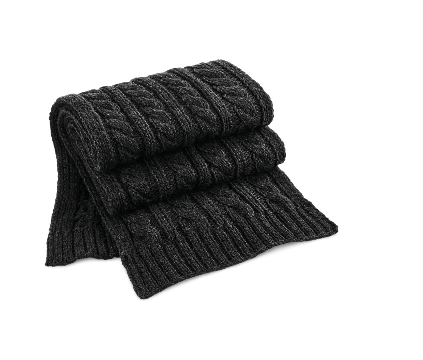 Ablösbares TearAway Etikett aus Klettgewebe. Schwerstrick mit Zopfmuster aus Wollgemisch. Grobmaschiges Modell. Wie handgestrickt. Unisex-Modell.