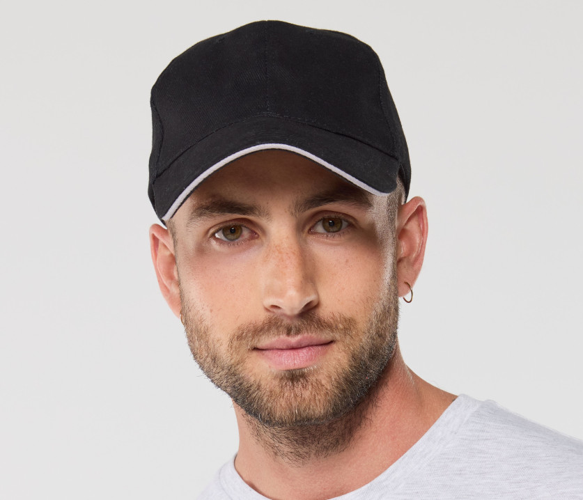 Vordere Paneele verstärkt. Kontrastiertes Sandwich-Schild. Verschluss durch Metallschnalle. Perfekt geeignet für Stickerei.