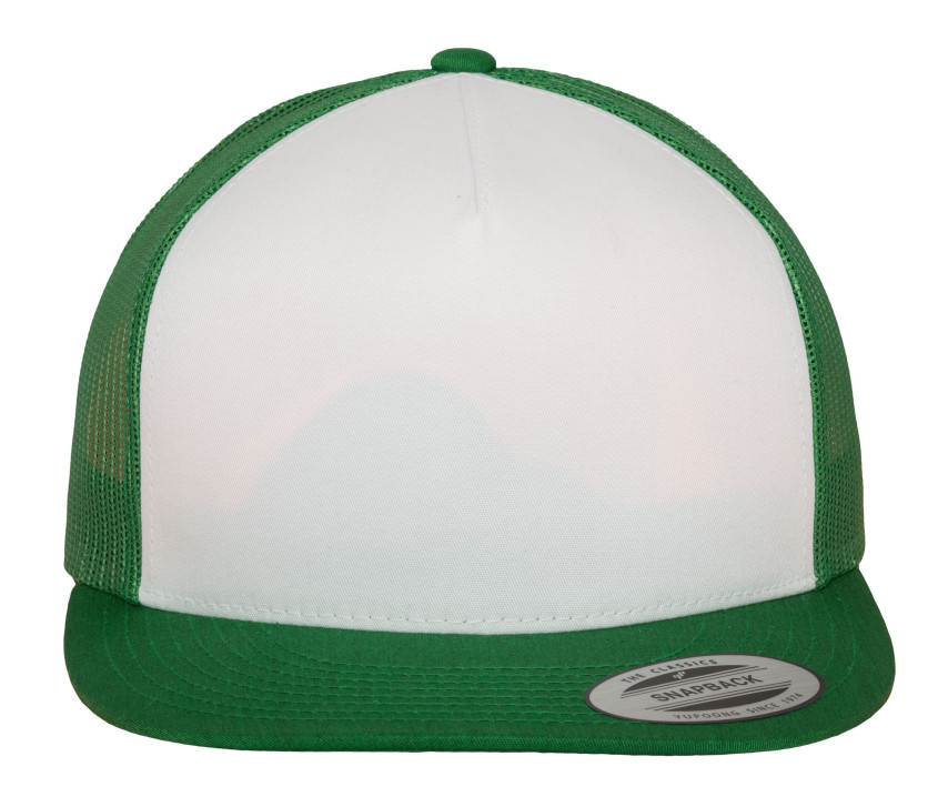 5 Panels. Gerades Schild. Netzgewebe hinten und an den Seiten. Vorderes Paneel verstärkt. 8 Nähte am Schild. Verschluss mit Druckknopflasche aus PVC. Geeignet für Kopfumfänge zwischen 53 und 61 cm.