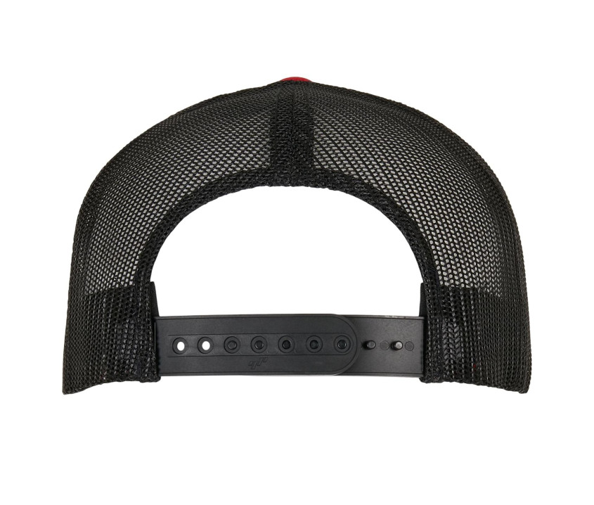 6 Panels. Gebogenes Schild. Netzgewebe hinten und an den Seiten. Vorderes Paneel verstärkt. 8 Nähte am Schild. Verschluss mit Druckknopflasche aus PVC. Geeignet für Kopfumfänge zwischen 53 und 61 cm.