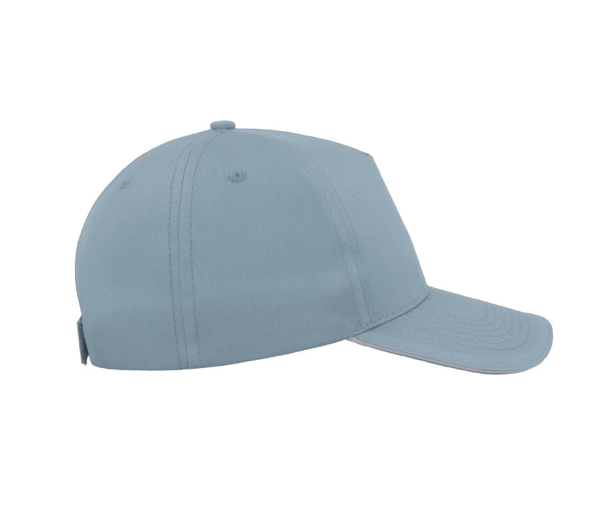 5 Panels. Klettverschluss. Polyesterband. Sandwich-Paspel auf dem Schild. Abgesteppte Ösen. Vorderes Paneel verstärkt. Vorgeformtes Schild. 6 Nähte am Schild. Kopfumfang: 58cm. Schirm mit Kunststoffkernstruktur gefertigt.