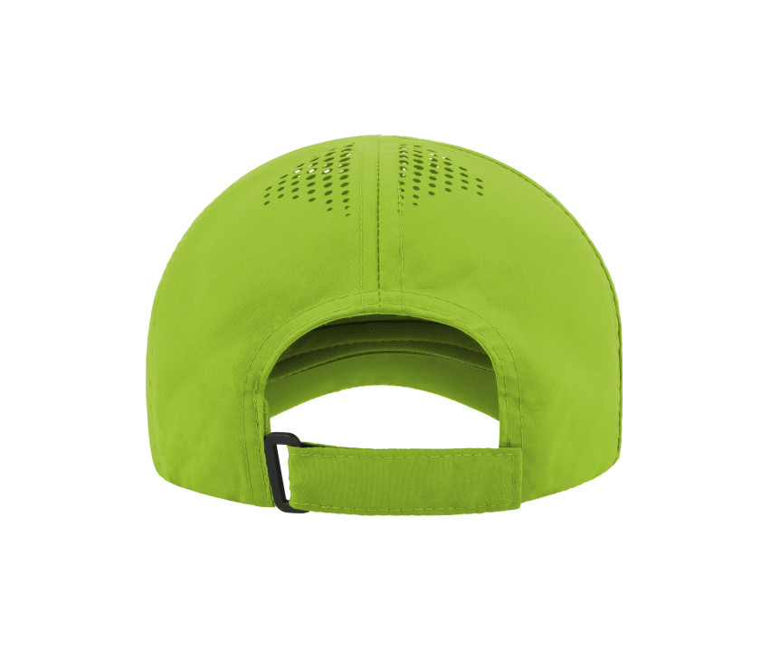 6 Panels. Klettverschluss. Per Laser angebrachte Lüftungslöcher oben an der Kappe. Vorgeformtes Schild. Vorderes Paneel destrukturiert. Schirm mit Kunststoffkernstruktur gefertigt.